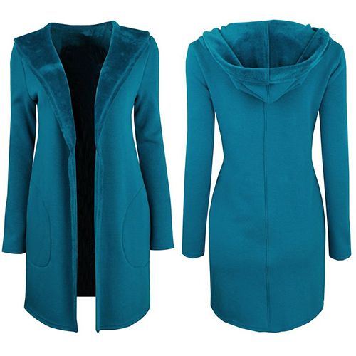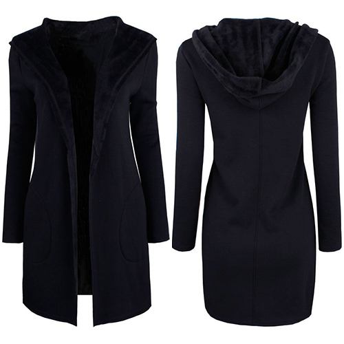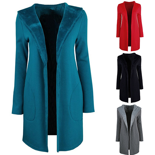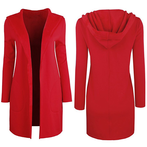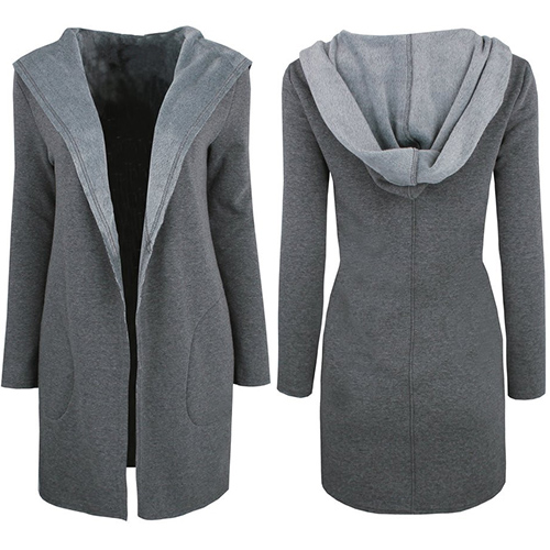 cardigan is crafted with cosy and warm material, owning long sleeve, hooded and 2-side pockets design
