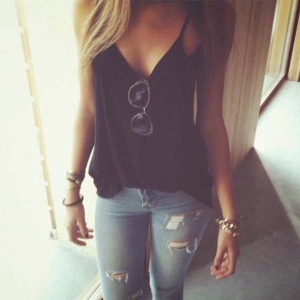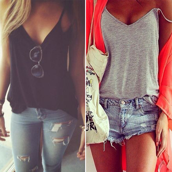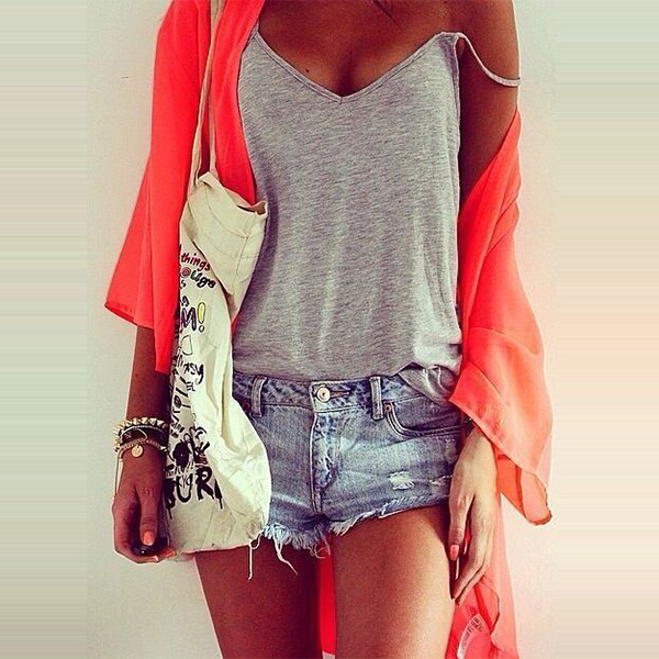 accompanied with a v-neck,simple and cozy. Just need to match with your denim shorts,then a cool and