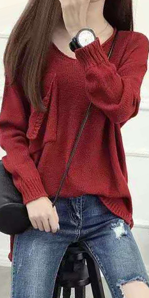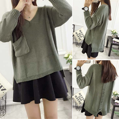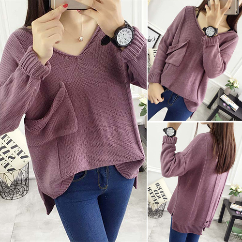 with long sleeve,v-neckline and a high-low hem,chic and stylish. And its chest pocket design