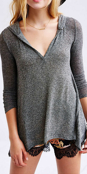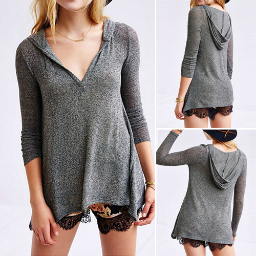 Crafted from the best knit material, with v-neck, long sleeve, hooded and solid color design, this relaxed T-shirt is perfect for your daily wearing. Even if you wear a bra or bandau underneath, your sexy and sultry figure will still be shown to everyone.