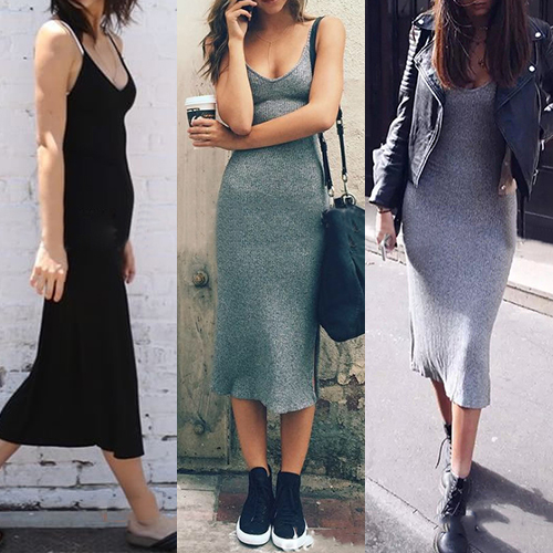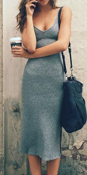 Solid color style,crafted from soft and stretch ribbed knit fabric,this dress can give you