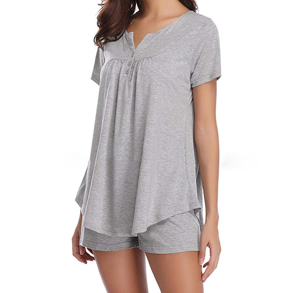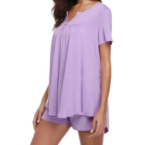 Solid color style,including a short sleeve v-neck loose top and a shorts,this sleepwear set is crafted