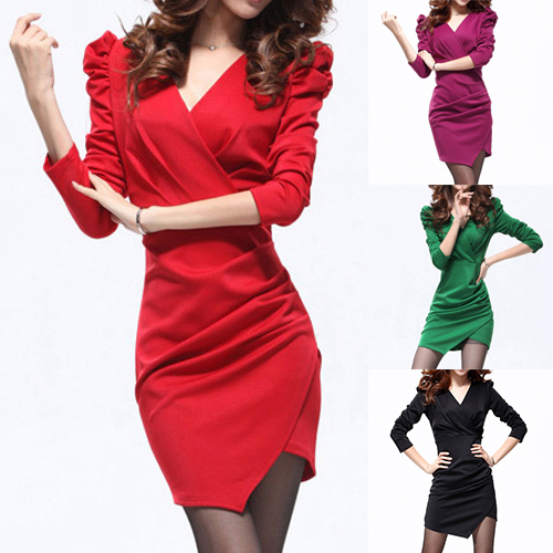 color and V-neck patterns, with puff sleeve and irregular hemline, which will certainly make you stand