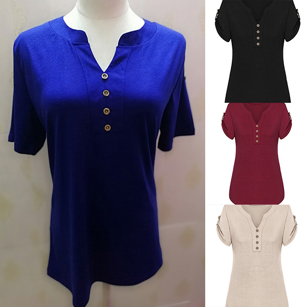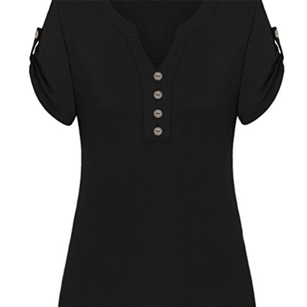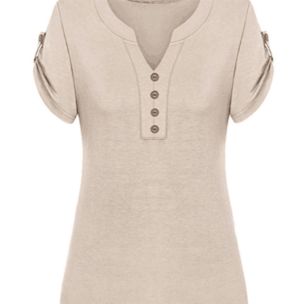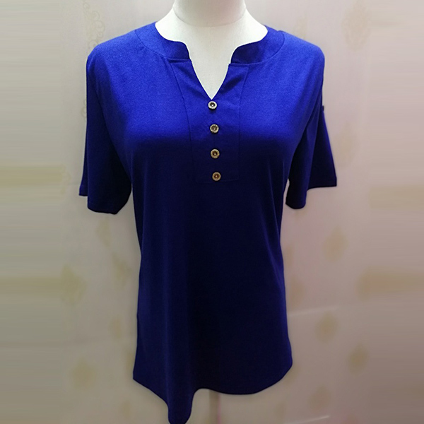 Solid color style,crafted from soft and breathable fabric,with short sleeve,v-neck and single-breast at the top