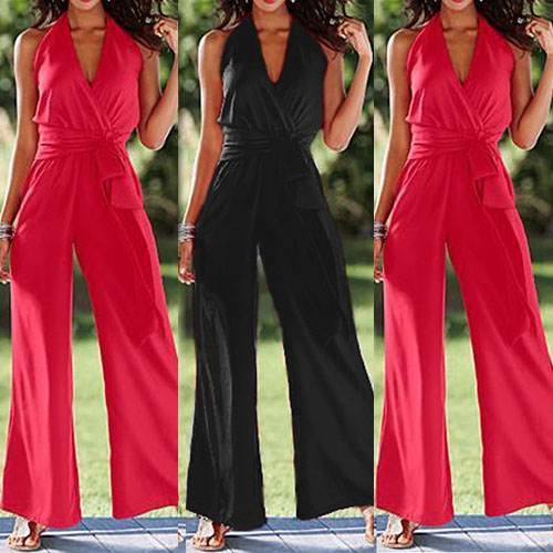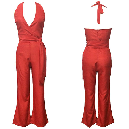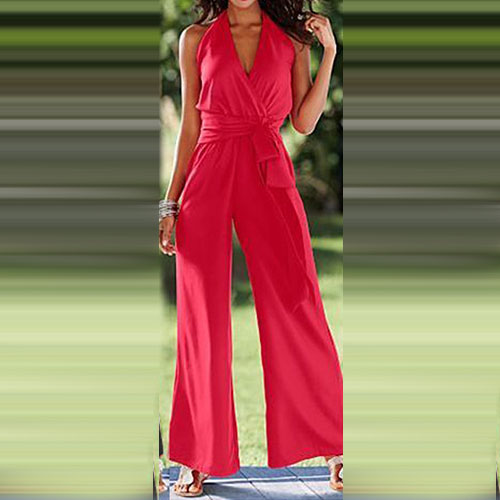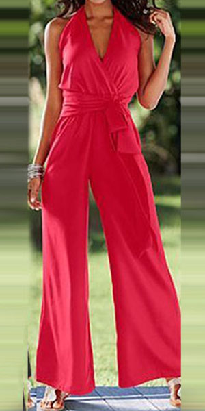 This jumpsuit is a perfect blend of stylish, sexy and casual style. It is designed with solid color, v-neck,