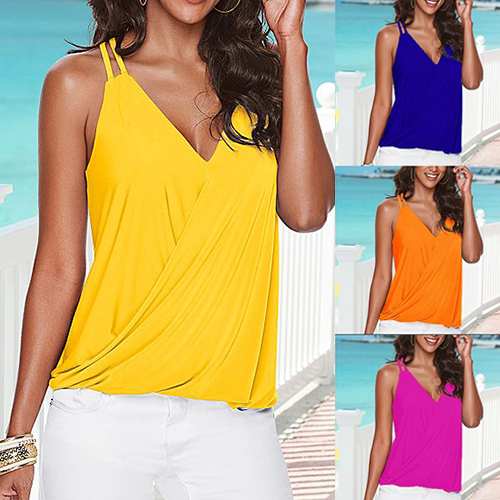 Create a perfect summer trip with this tops. Solid color style, with v-neck and sleeveless design,