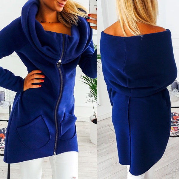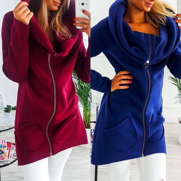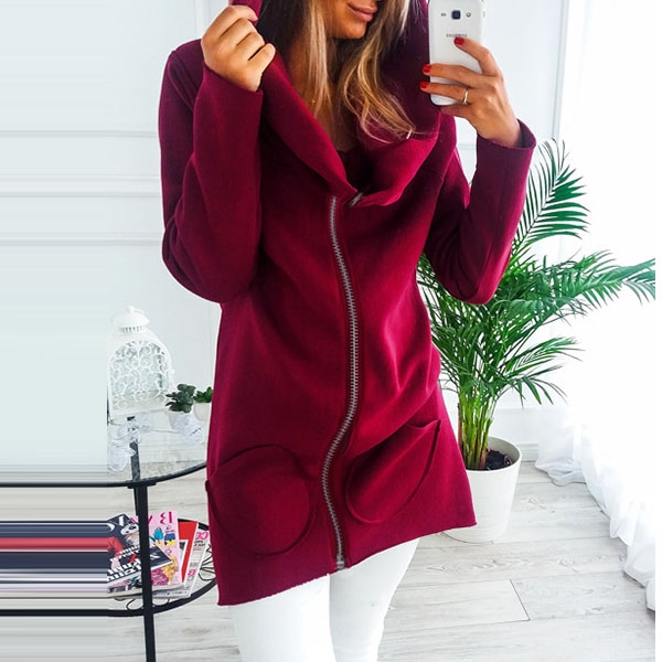 zipper front design, a spliced hood, two patched pockets, long sleeves. The hoodie will be your best