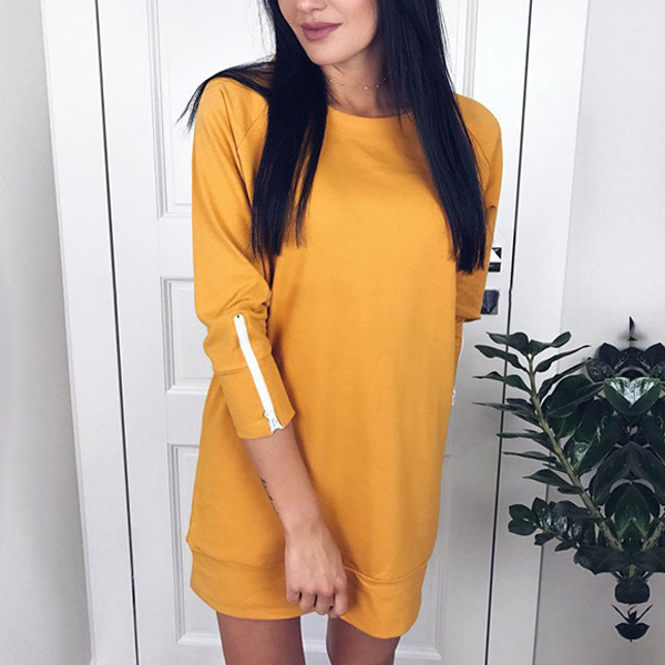 Embrace your casual weekends with this relaxed dress! Comes with a solid color,crafted from soft and