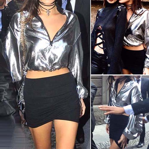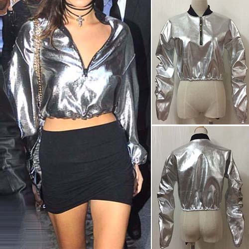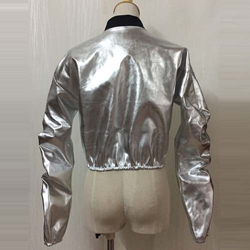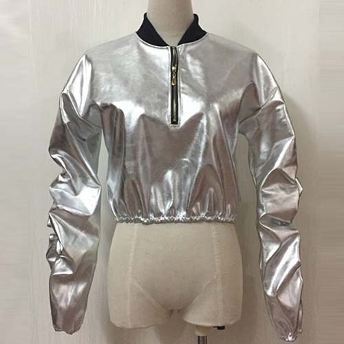 a shining silver style, with front zipper, v-neck and long sleeve design, this piece is aimed to send you
