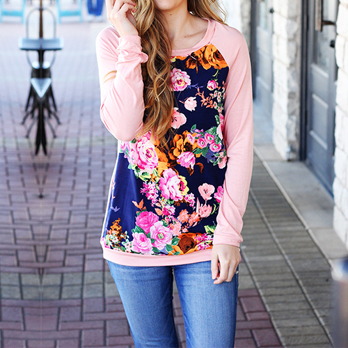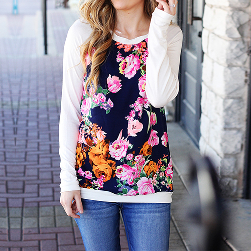 The top features flower printed design and round neck long sleeve patterns, casual and stylish. It is