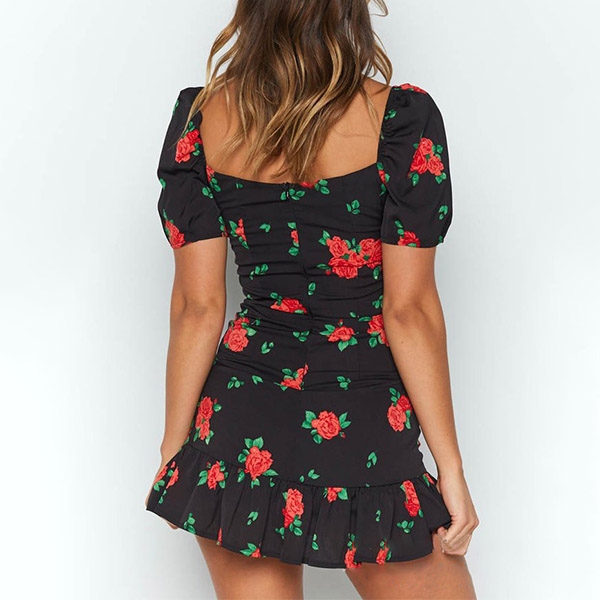 collar.And the printed design is another bright spot.Moreover,the ruffle hem design can make you
