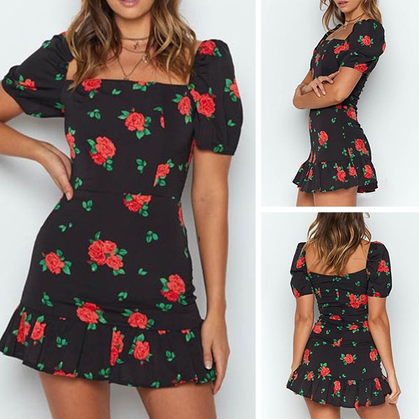This unique dress contains a lot of fashion elements,such as the lantern sleeve and the square