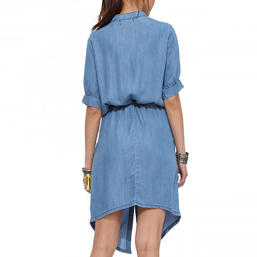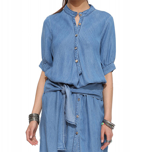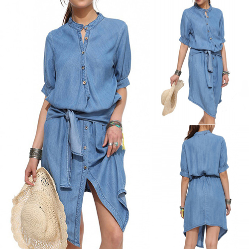 love! Outfitted with stand collar,half sleeve and irregular hem design. What's more,its waist