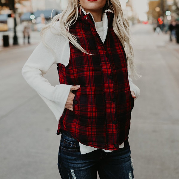 Piece together your laid-back profile wearing this plaid warm vest! Draft from a cozy and smooth fabric,