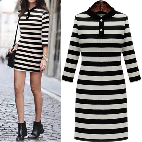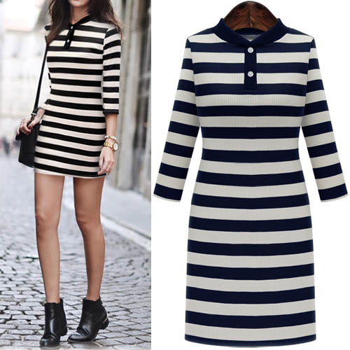 piece. It is decorated with striped design and 3/4 sleeve front button patterns, which can give you a stylish