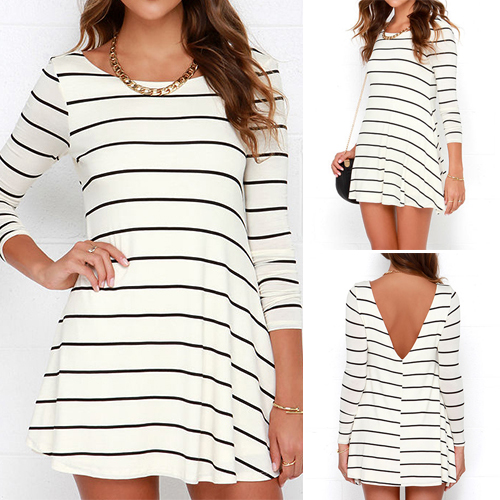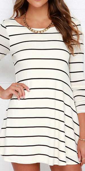 Put yourself into this dress for a casual and classic style. Striped style, designed with round neck,