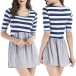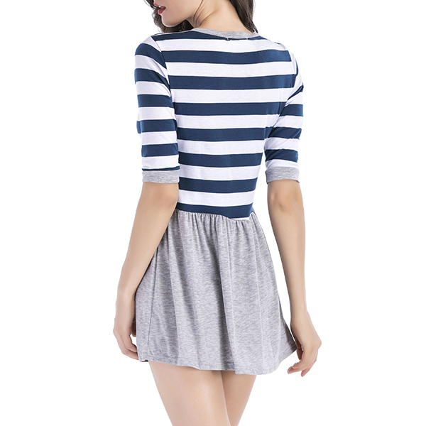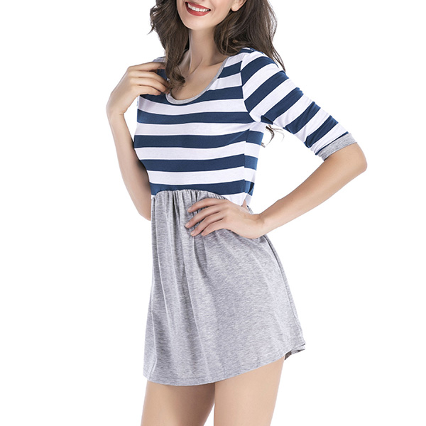 On your lazy days,you can slip into this relaxed dress for a cozy yet stylish style. Striped spliced design