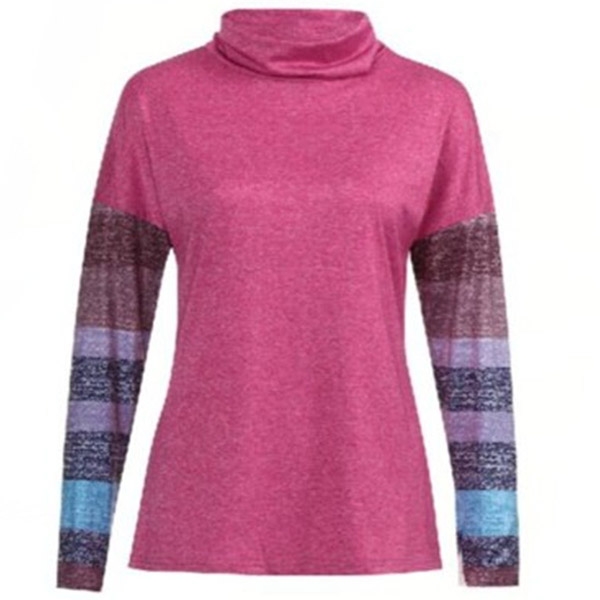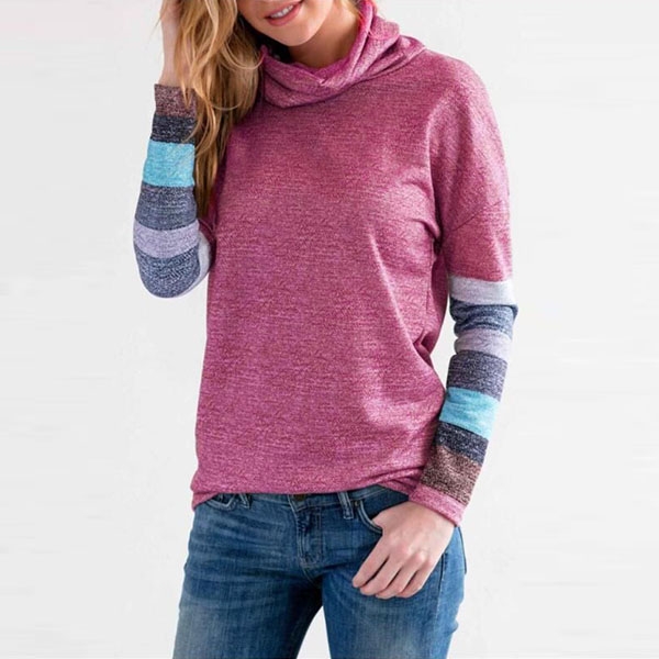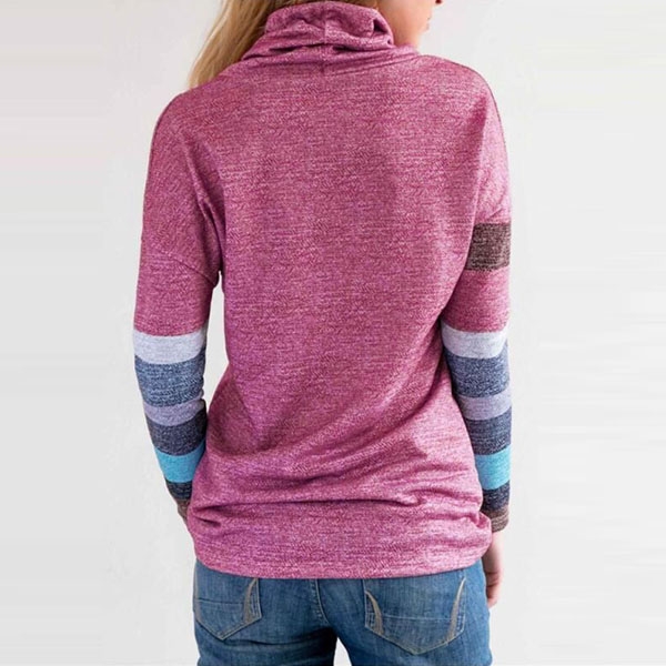 The striped spliced and high collar design are the highlights,which make this piece different from others.