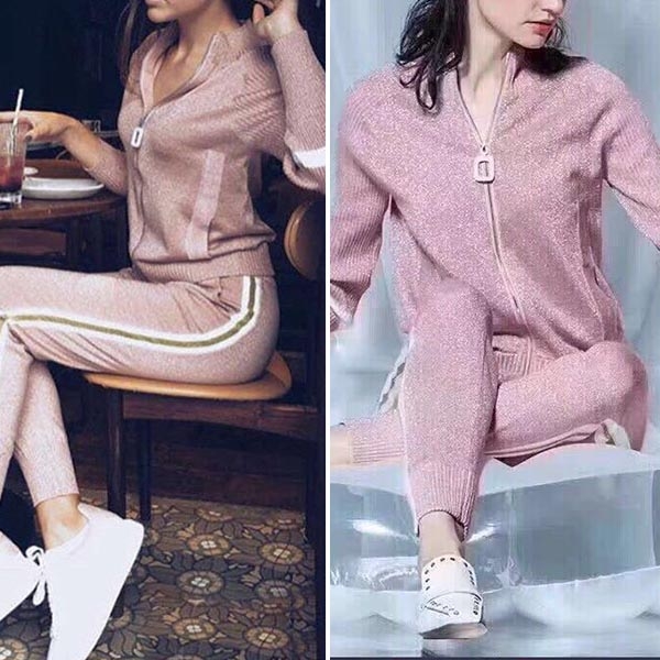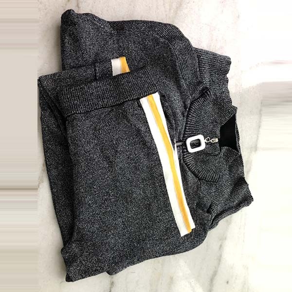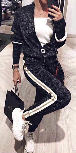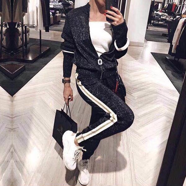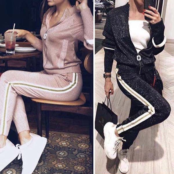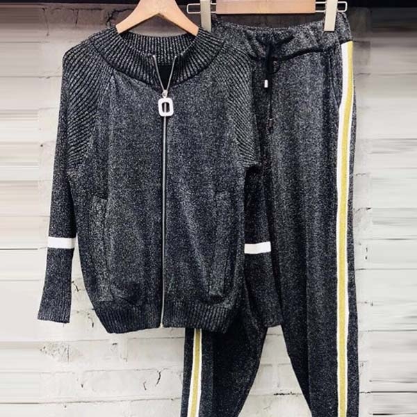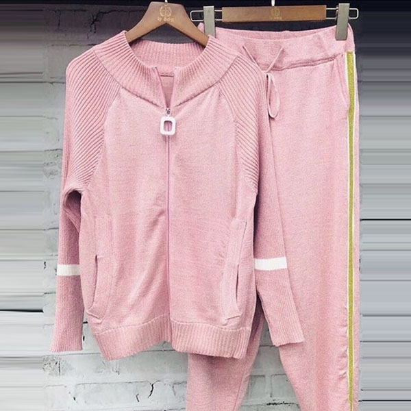 Fashion Striped Spliced Long Sleeve Knit Coat + Pants Two-piece Set