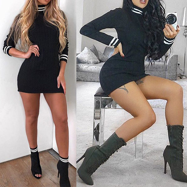 When you have this dress in your team, you can have a cozy yet stylish style. The striped spliced design makes