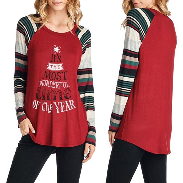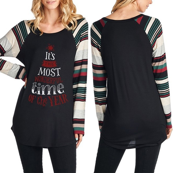 When you wanna a casual and cozy style,you can totally count on this t-shirt. Its striped spliced long sleeve and letters