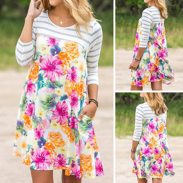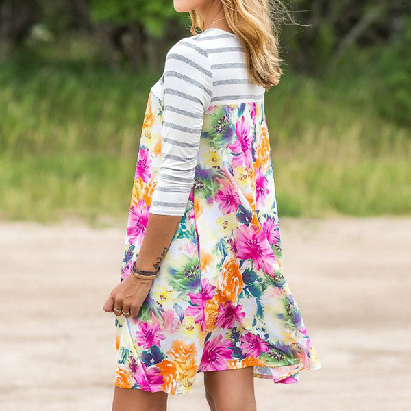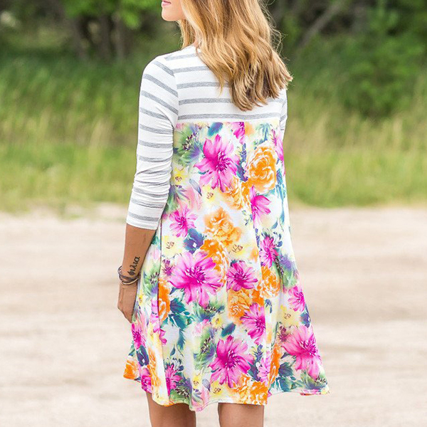 Your busy routine can be made much easier if you choose this dress. Striped spliced and printed details make