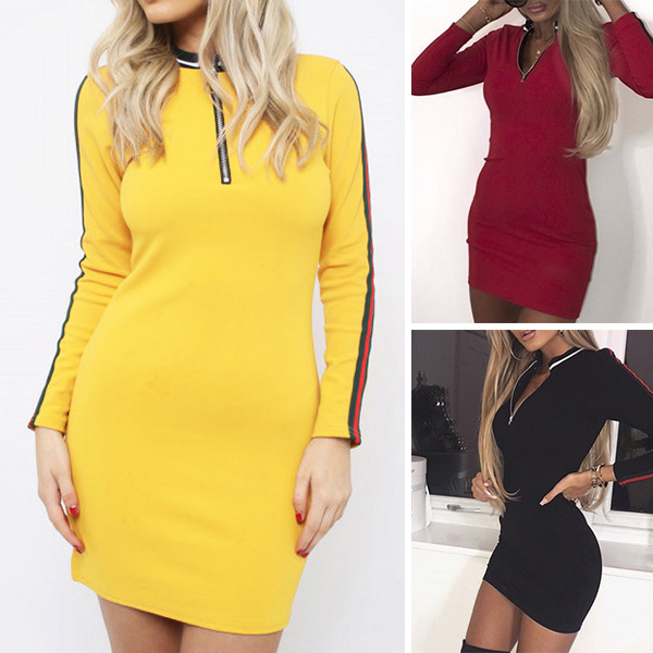 Outfitted with long sleeve,round neck and a fit silhouette,this dress knows how to demonstrate your slender figure.