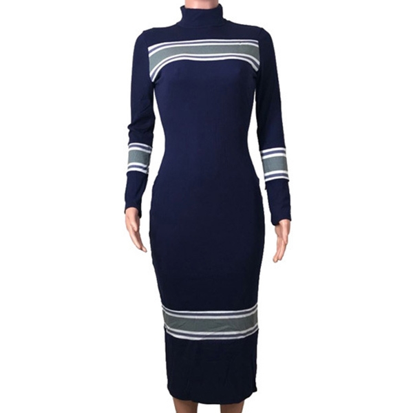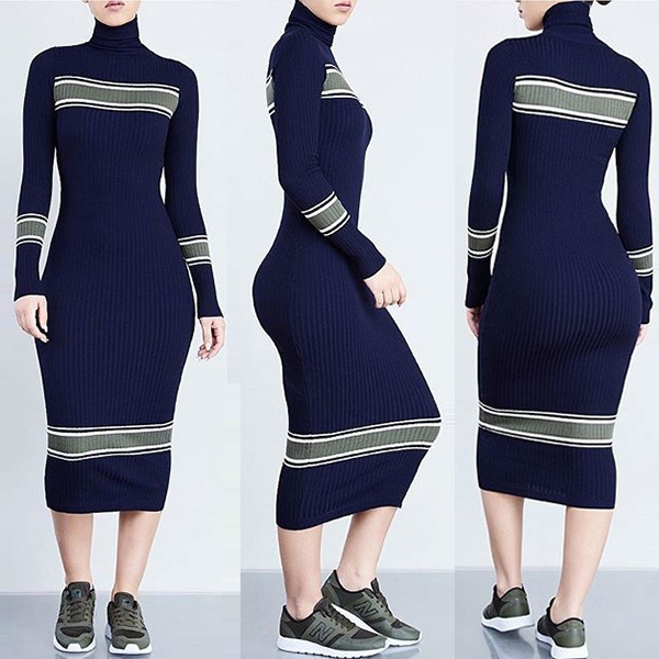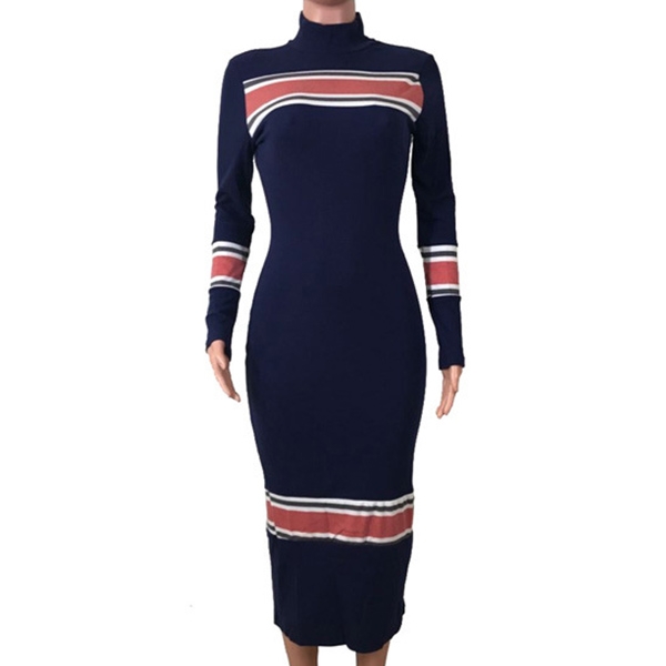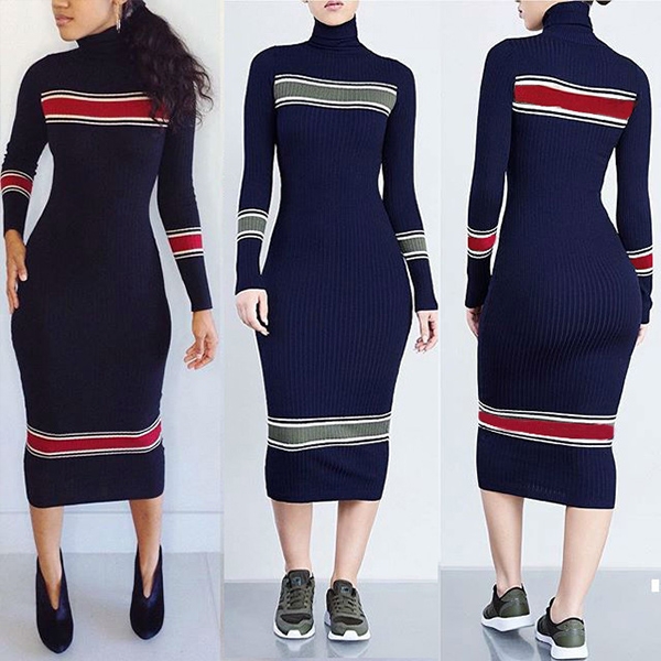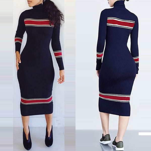 spliced design will further enhance its charm. Finished with long sleeve and turtleneck design,this dress