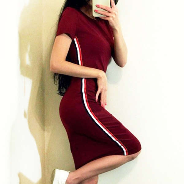 round neck and a fit silhouette design,this dress can showcase your slender figure. Moreover,the striped