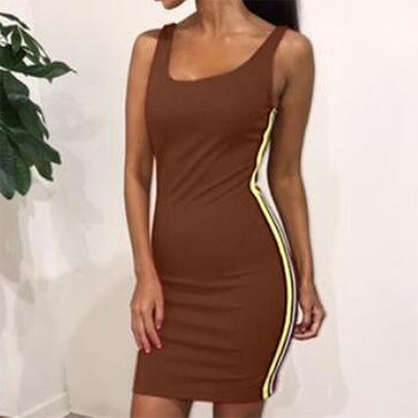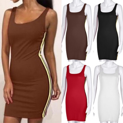 This summer,such a dress is your good partner. The side striped spliced design makes this piece look not