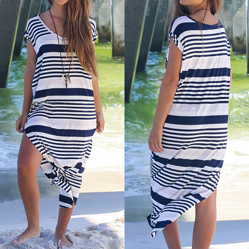 When you plan a travel to seaside, you should list this casual dress to your beach item. Striped style,