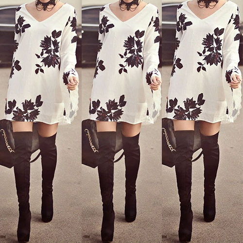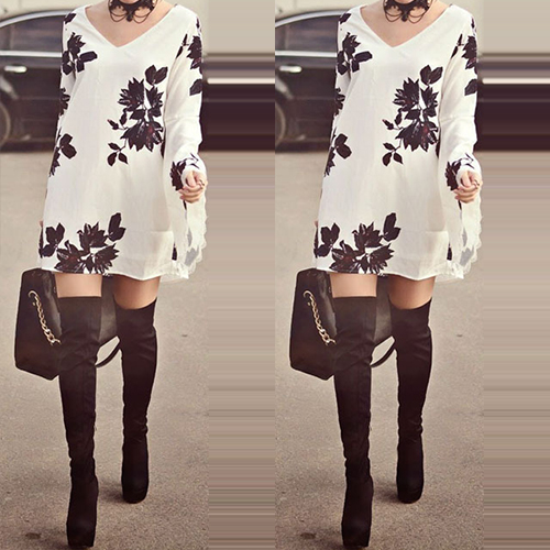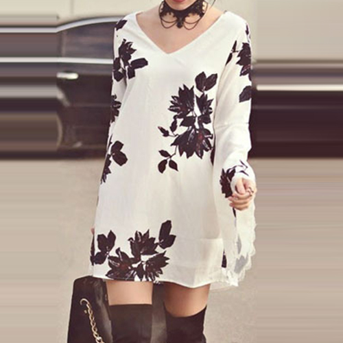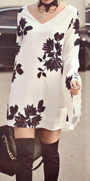 With v-neckline and a-line design on this piece of dress, it looks fashion and a little sexy. What's more, with several floral prints on this piece of dress,