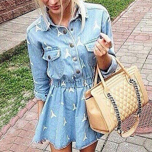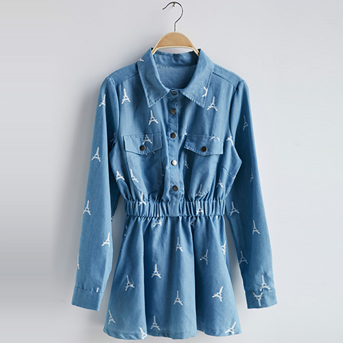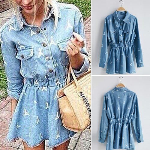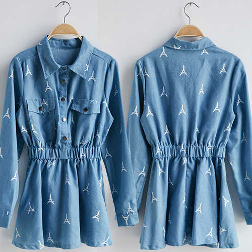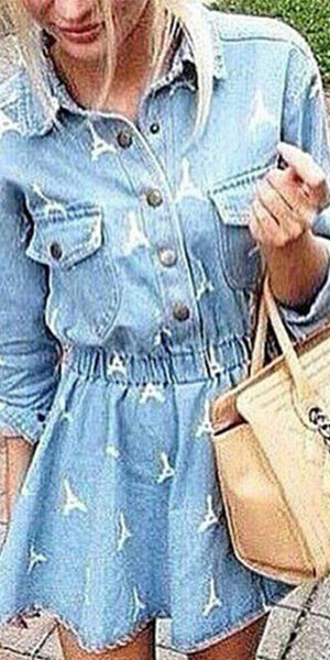 Denim is a classic factor and costumes with denim factor will always be popular and fashion. This piece of denim dress is collared and it's styled