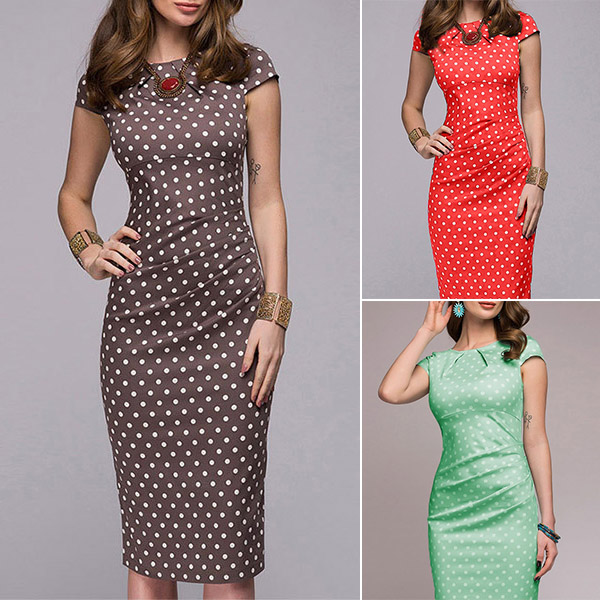 When it comes to fashion factor, there is no doubt that polka dot is a classic factor that will neverbe out of fashion. This piece of dress is printed with polka dots, which makes it look fashion andclassic. What's more, since this piece of dress is bodycon style it can perfectly emphasize your slim stature.
