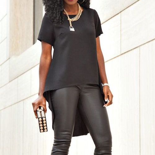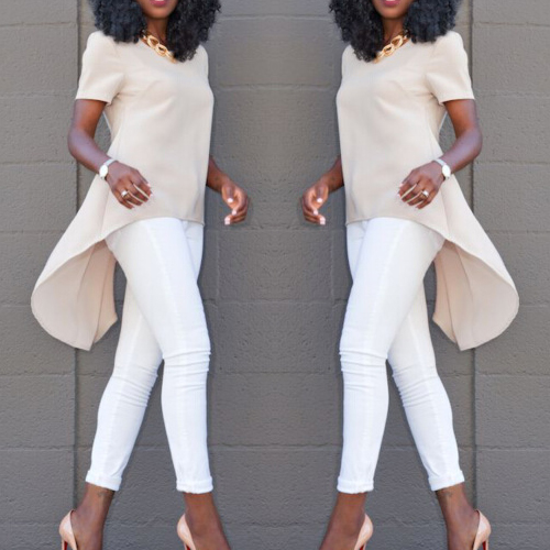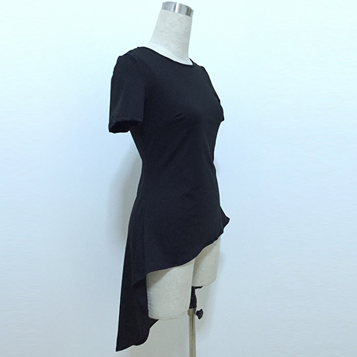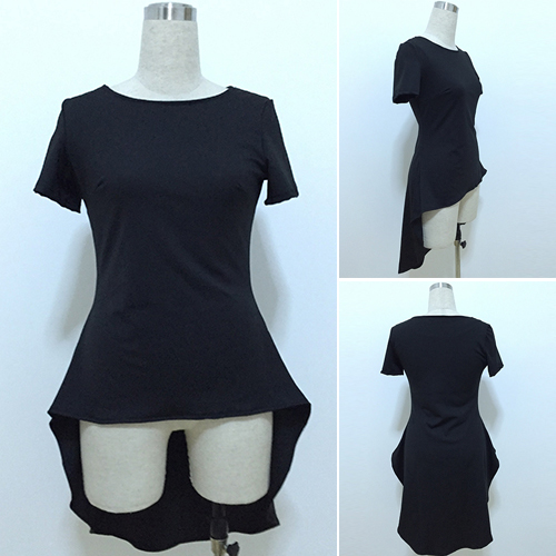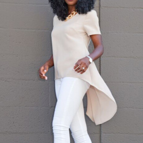 short sleeves. But since this t-shirt is also styled with a dovetail hem, it looks fashion and stylish.
