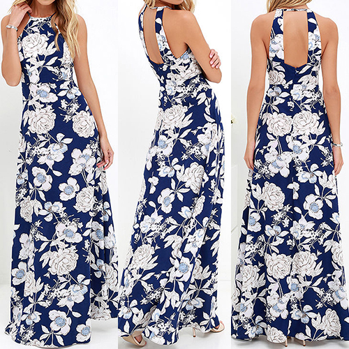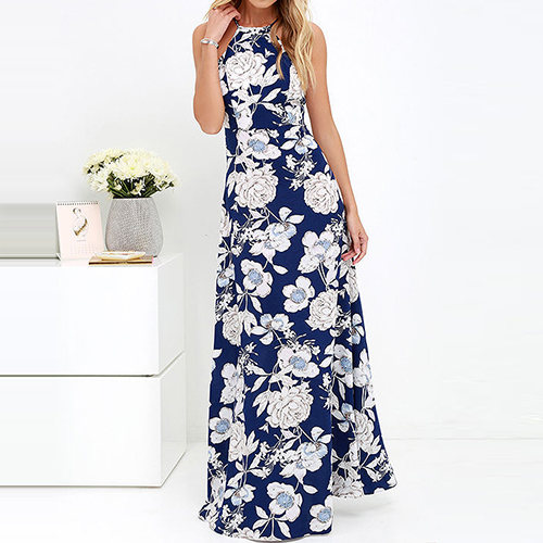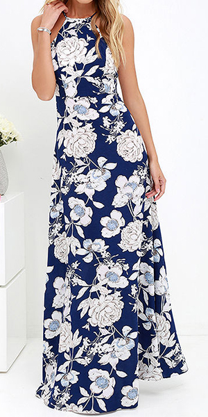 printed maxi dress will be in hot sale. Featuring a halter design, this piece of maxi dress looks sexy and stylish.