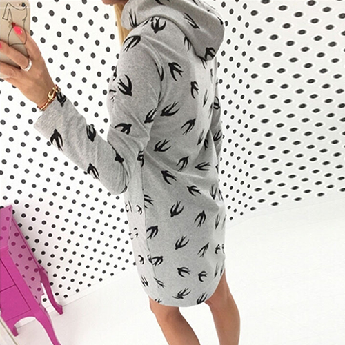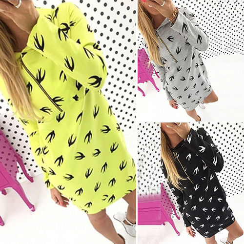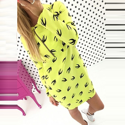 Strolling on the street with this dress,you would draw much attention. Features allover Swallows