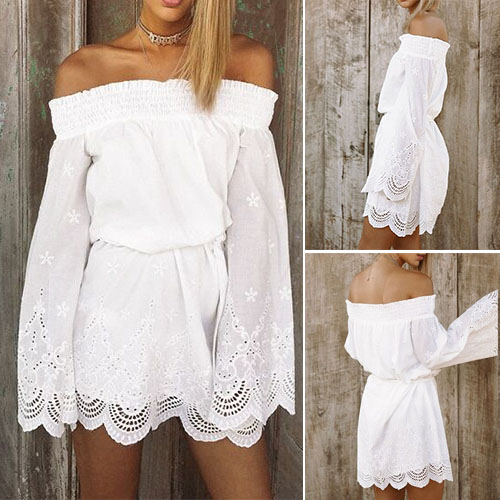 and off-shoulder patterns, with flare sleeve design, sweet and stylish. When you slip on it, you will transform