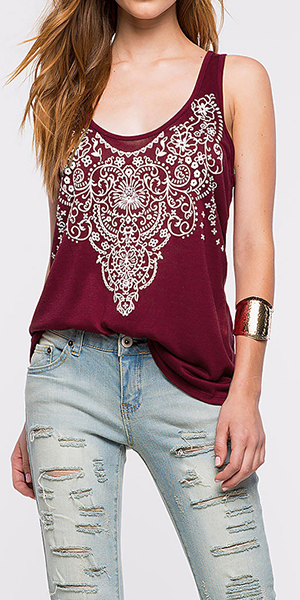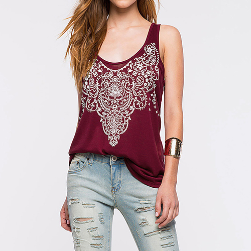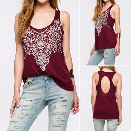 Features chic totem printed pattern,with sleeveless,round neck and a cutout at back,this piece can keep