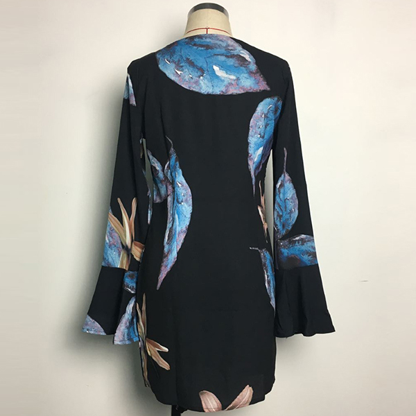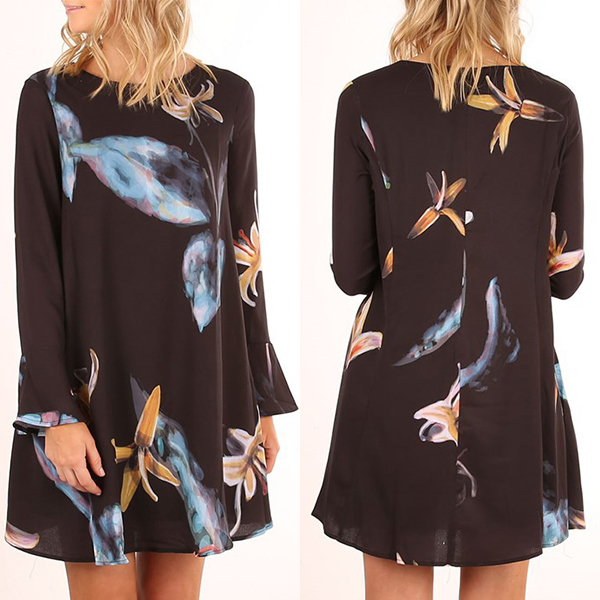 Add a touch of chic and stylish personality to your wardrobe with this dress. Designed with trumpet sleeve,round neck,