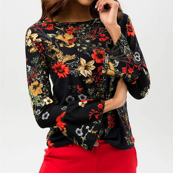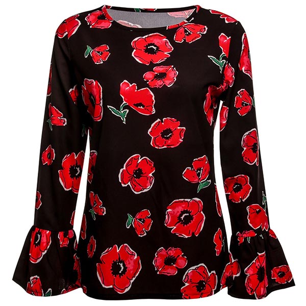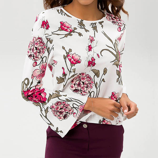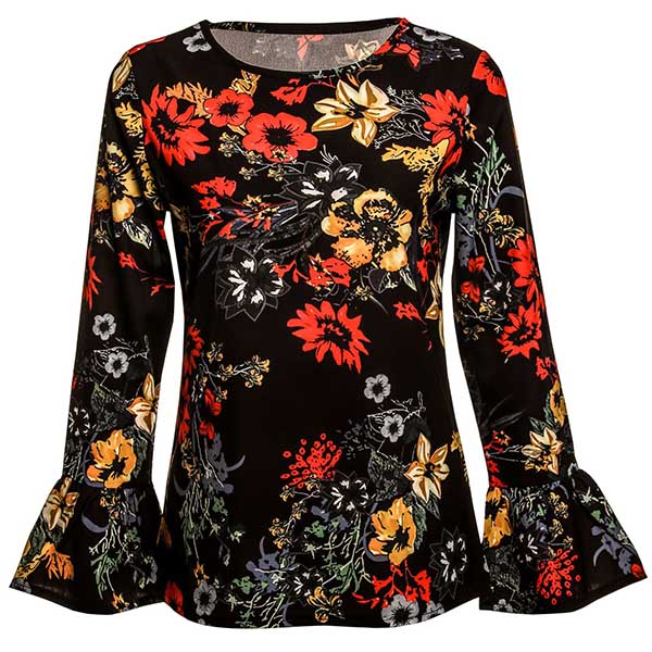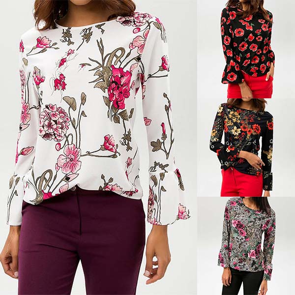 finished with trumpet sleeve and round neck design,this beautiful chiffon top can offer you a charming and