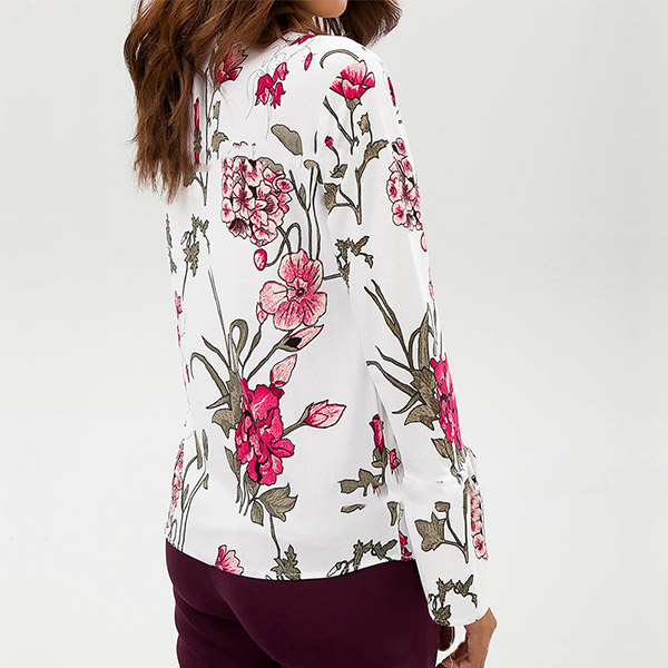 Your wardrobe can look more colorful by adding this chiffon top. Boasts chic and eye-catching printed pattern,