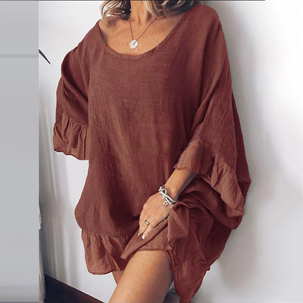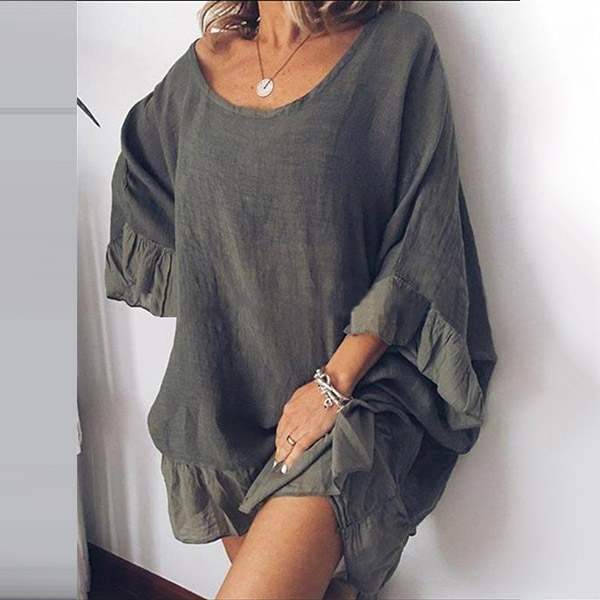 round neck and ruffle hem design make it look so chic and attractive. The loose silhouette design lends