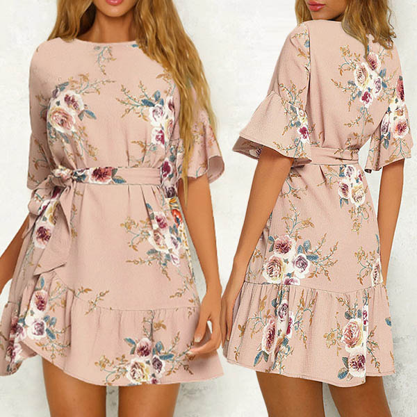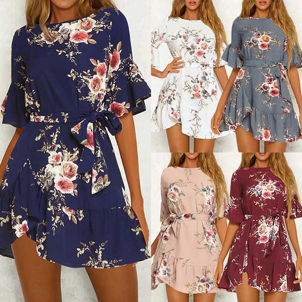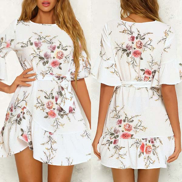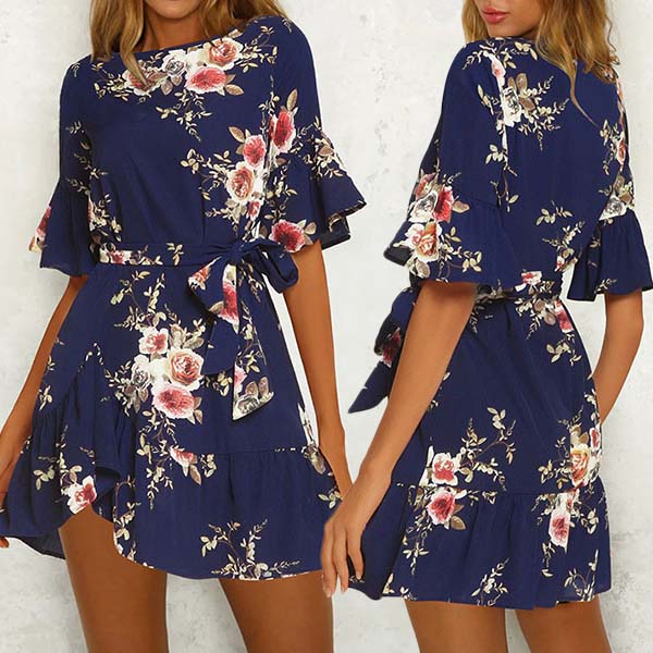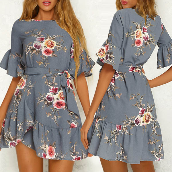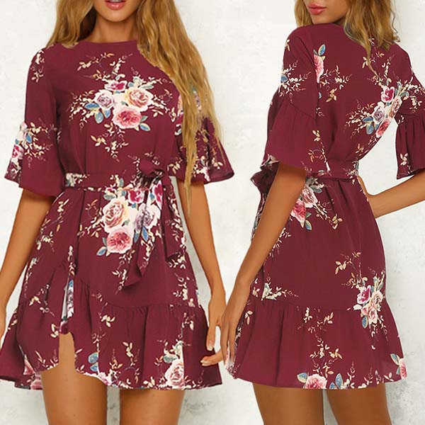 finished with trumpet sleeve and ruffle hem design,this dress can offer you a sweet and charming look.
