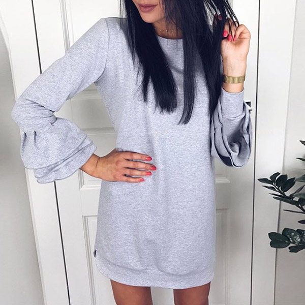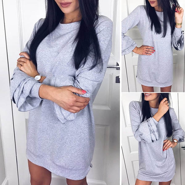 Exhibit your incredible style with this sweatshirt dress. Comes with a solid color,the trumpet sleeve