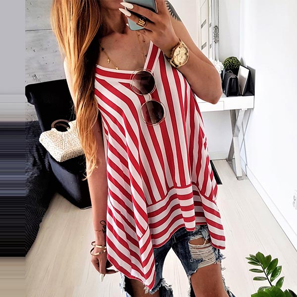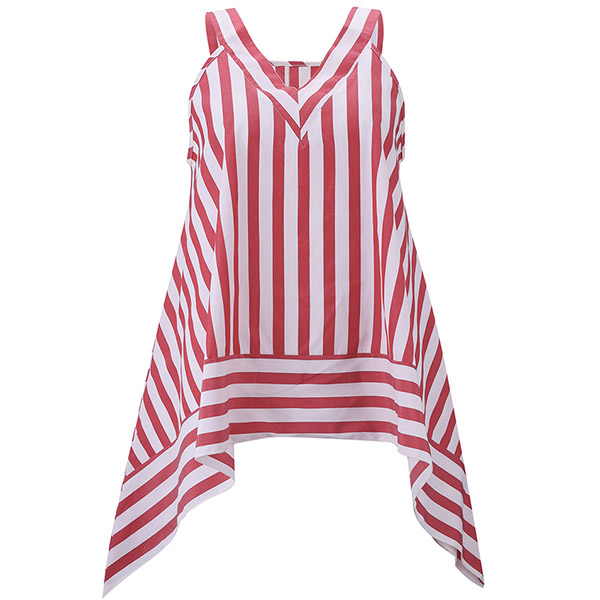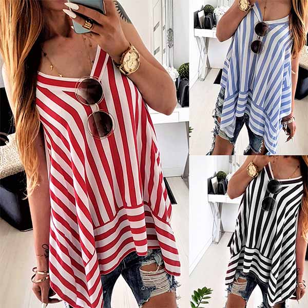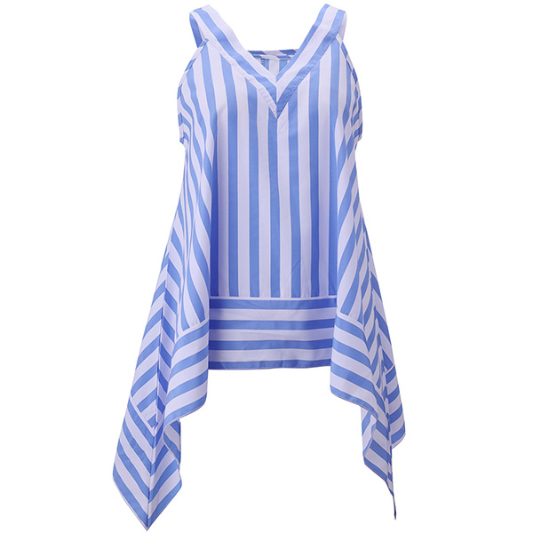 This top is designed with striped element,stylish and popular. Moreover,the v-neck and irregular hem design