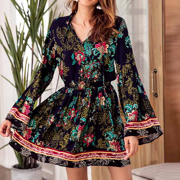 printed pattern.Girdling design at the waist of the dress,it can set off your seductive curve and show off your hot
