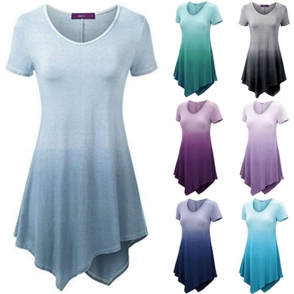 a long-lasting comfort. And the irregular hem and color gradient design make this piece look more stylish