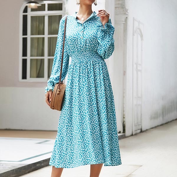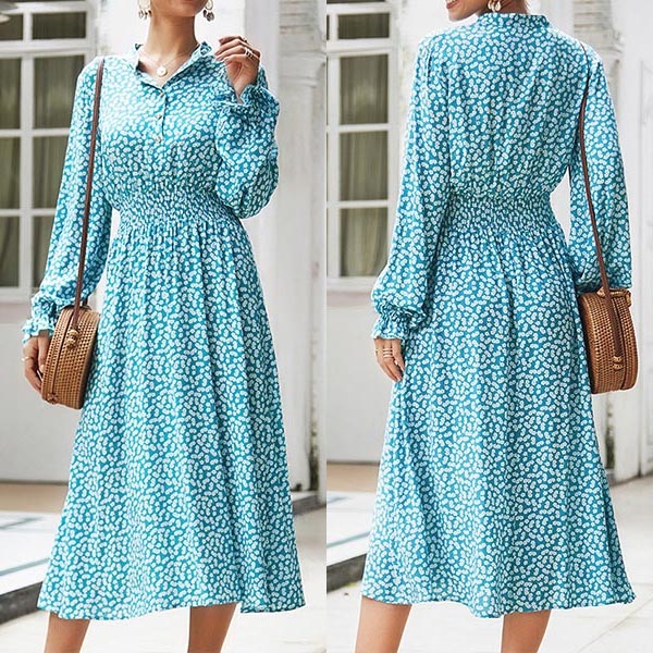 Features vibrant floral print,with long sleeve and high waist design,this dress not only can showcase your