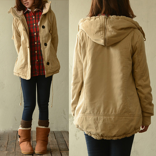 designed with long sleeve,hooded silhouette and plush lining,this coat of course can promise you a warm and